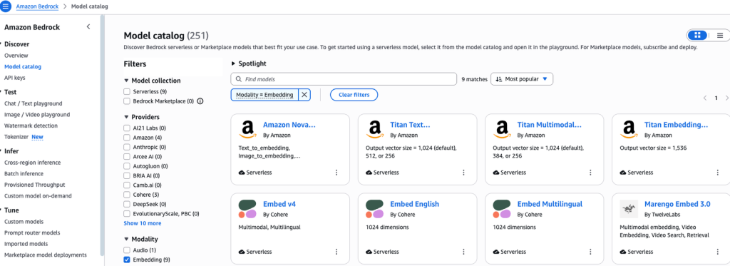 - Vào Amazon Bedrock > Model Catalog.